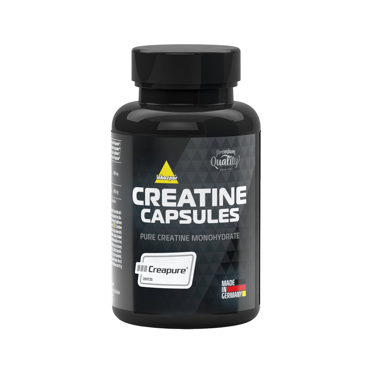 Inkospor Creatine Capsules to produkt łatwy w dozowaniu oraz połykaniu. Kreatyna zamknięta została w roślinnej kapsułce, do której produkcji nie została wykorzystana żelatyna pochodzenia zwierzęcego, co tworzy znakomitą propozycję dla wegan i wegetarian. Jest to najwyższej jakości produkt, który pozytywnie przeszedł rygorystyczne testy pod względem efektywności sportowej w laboratoriach Instytutu Badań Sportu Uniwersytetu Heinricha Heine w Dusseldorfie.